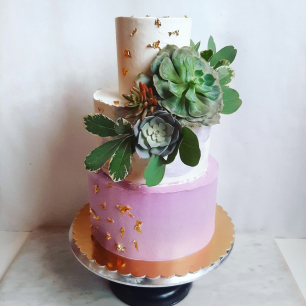 В то же время невероятно популярны торты в стиле омбре с переходом от глубоких тёмных тонов до более светлых или десерты с открытыми коржами на йогуртовой основе. Особо роскошно и изысканно выглядят торты в стиле рустик или бохо, украшенные яркими зелёными листьями и свежими цветами – их можно подобрать даже в тон свадебному букету невесты, её наряду или цветовой гамме торжества в целом. Необычным украшением сладкого стола станет французский крокембуш – торт конусовидной формы из небольших шариков тоффи, украшенных миндалём и шоколадом.