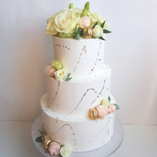 Идеальный вариант для свадьбы – торт из нескольких ярусов, каждый из которых может быть с разной начинкой, чтобы гости выбрали именно то, что им больше всего по вкусу. Если вы заказываете торт весом до 7 кг, ярусы можно располагать один на другой. Если же торт больше, то лучше всего дополнительно предусмотреть специальные подставки.
